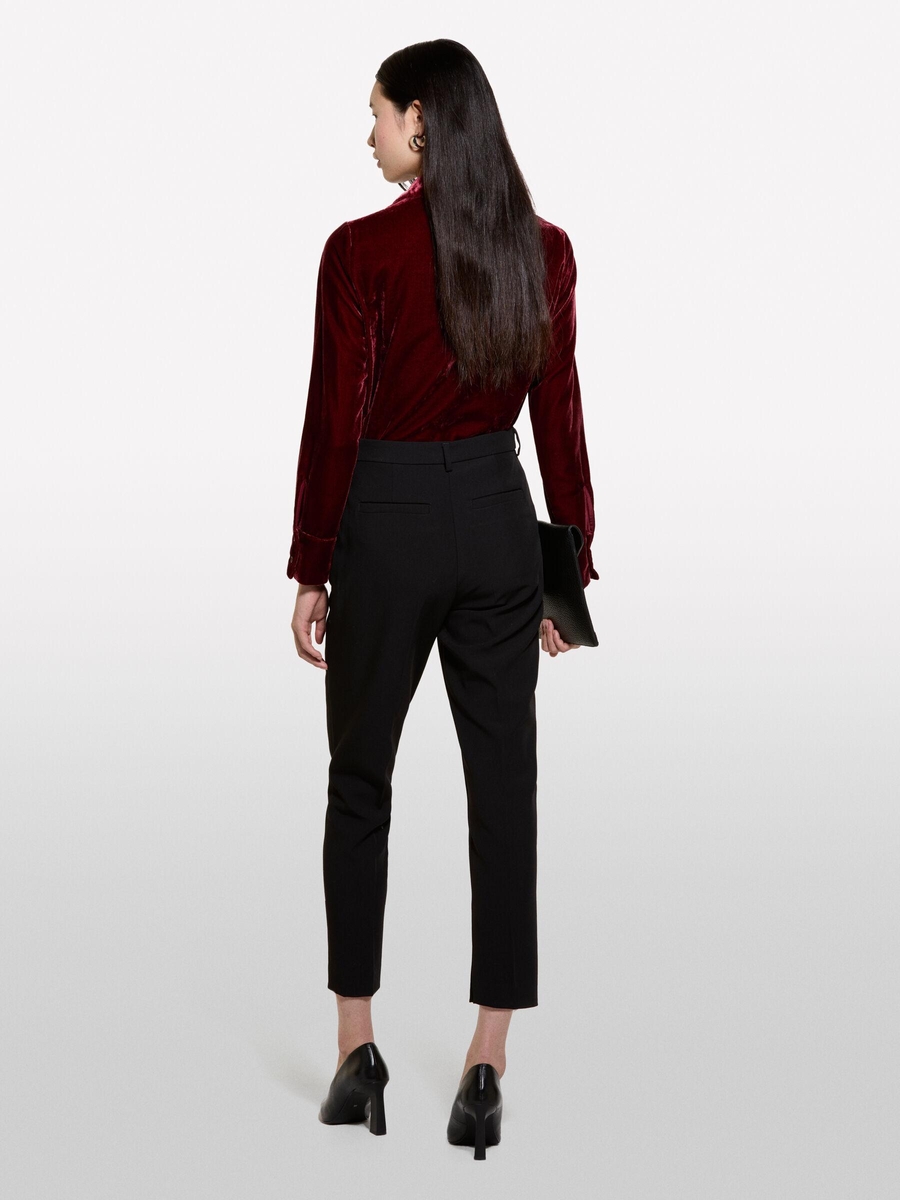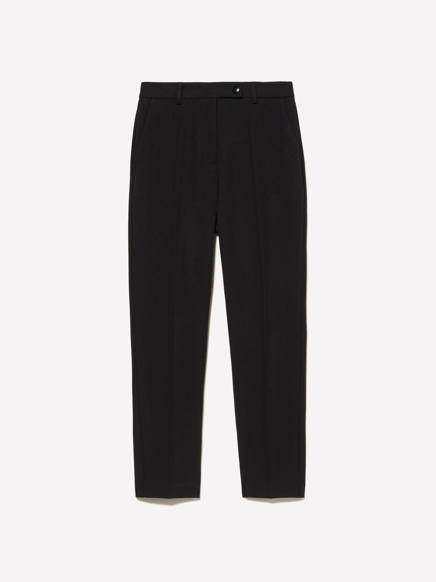 Viskoz Karışımlı Paçası Yırtmaç Detaylı Yüksek Bel Pantolon Kadın Siyah Pantolon - 324A45PKLF05Z