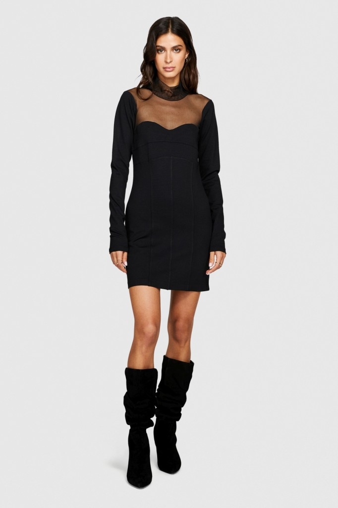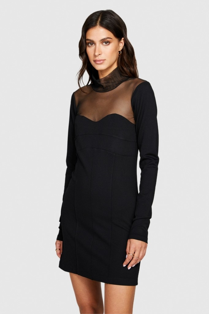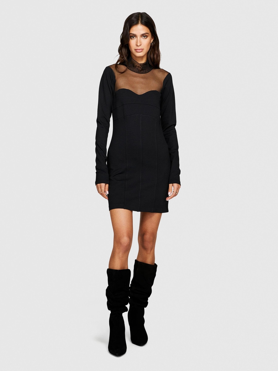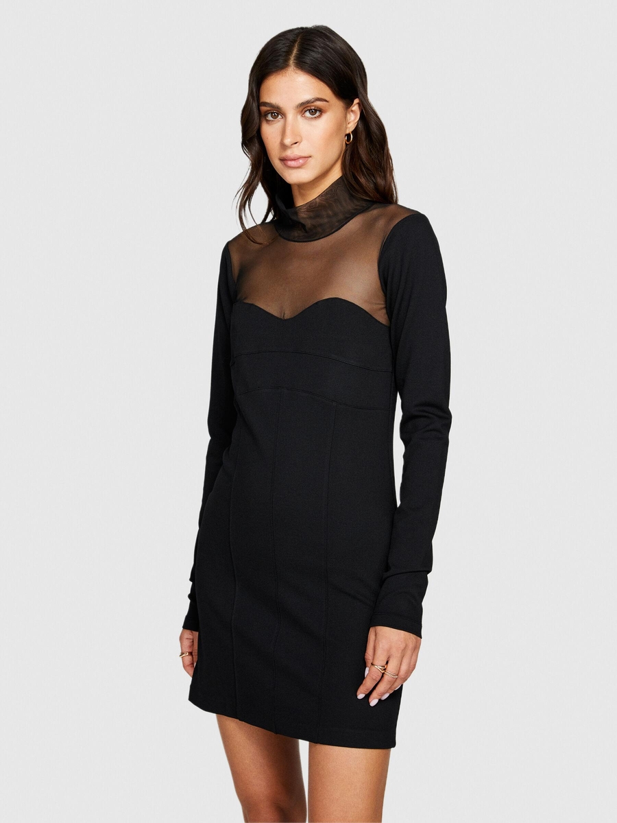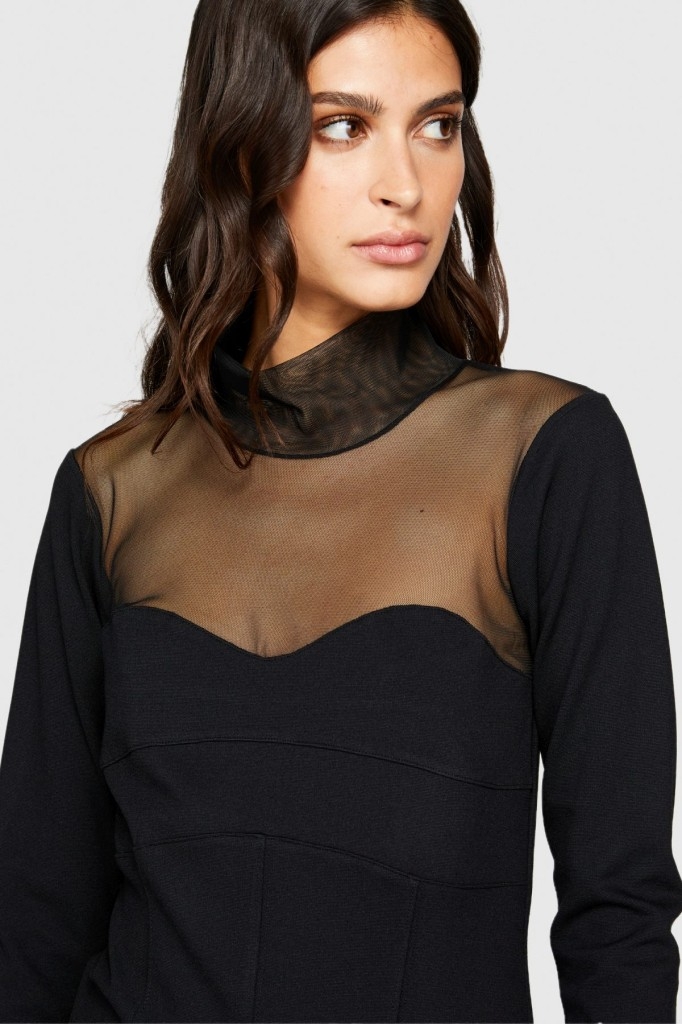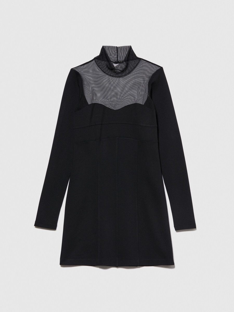 Viskoz Karışımlı Roba ve Kolu Dantelli Mini Elbise Kadın Siyah Elbise - 323A4V3CLV04F