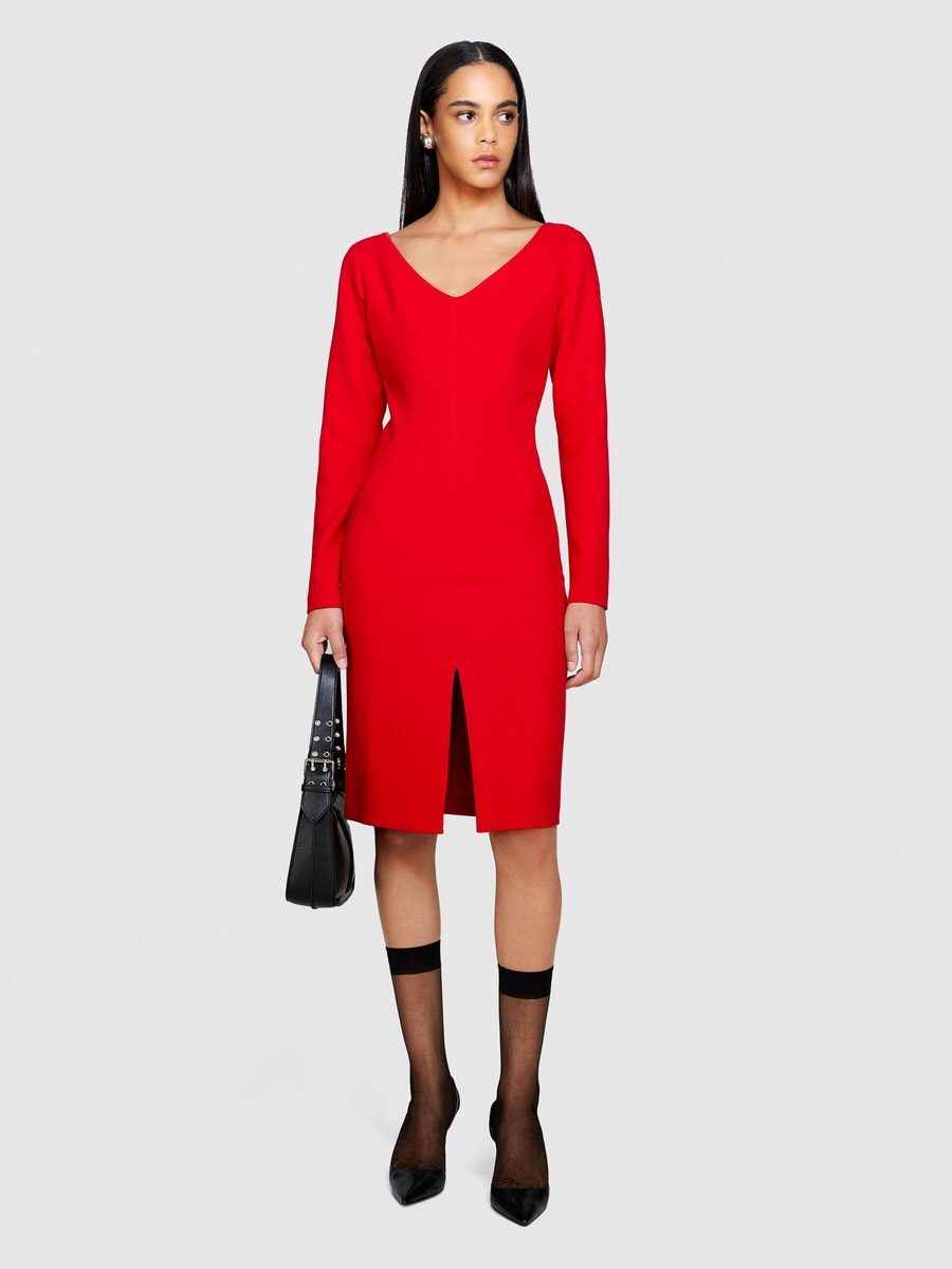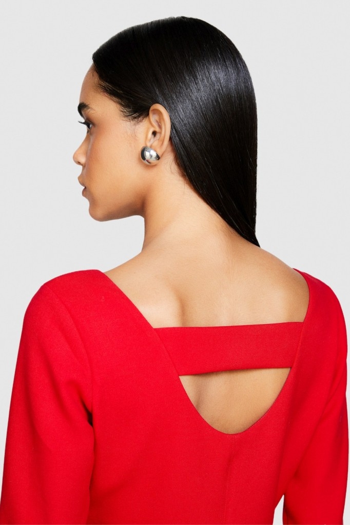 Viskoz Karışımlı V Yaka Uzun Kollu Crep Elbise Kadın Kırmızı T-Shirt - 323A43Q3LV04P