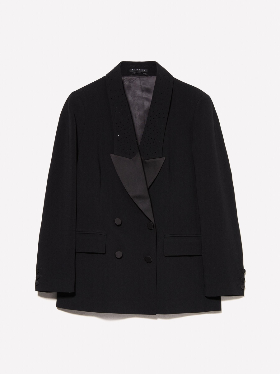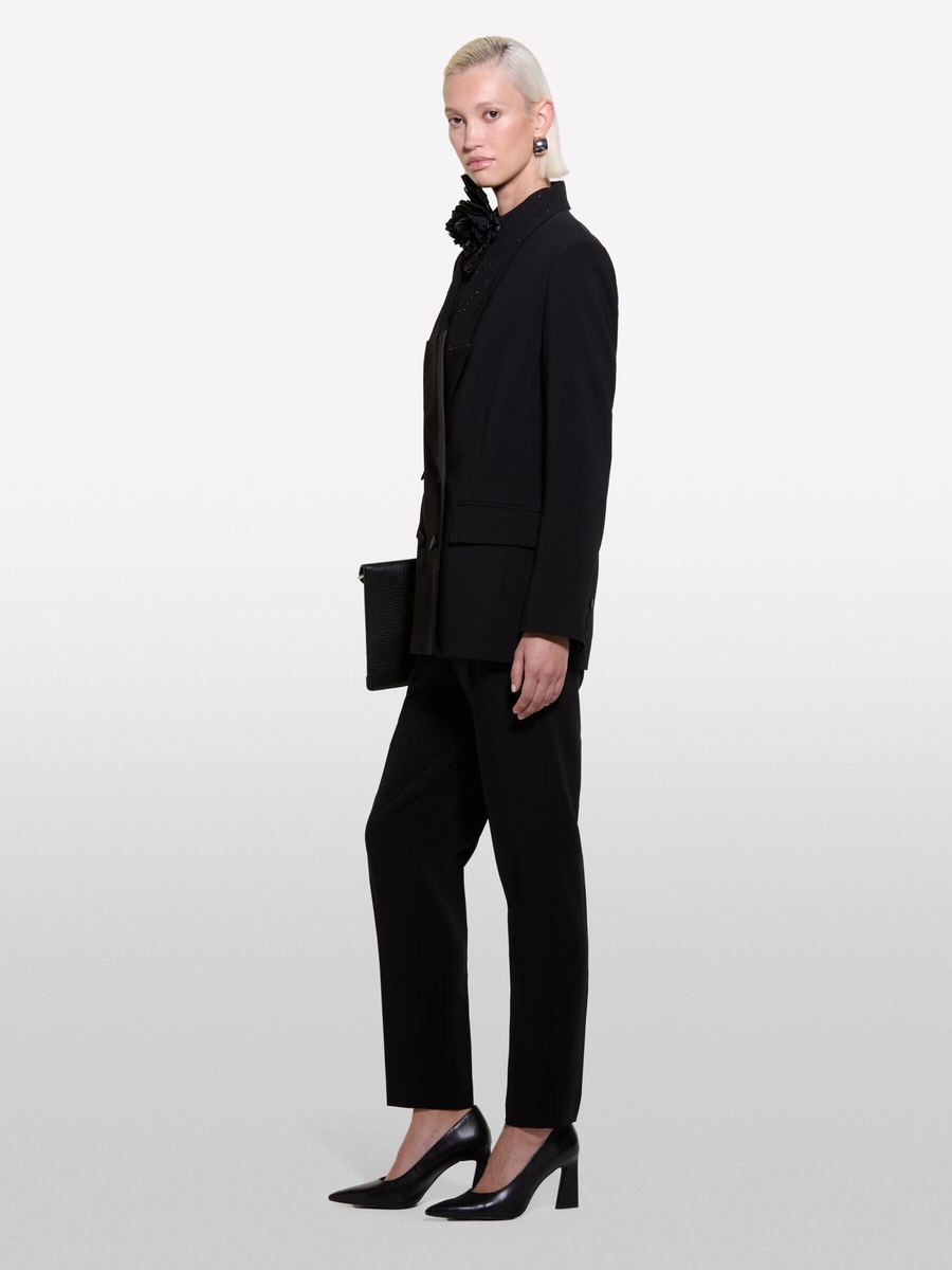 Viskoz Karışımlı Yaka Detaylı Kapaklı Cepli Kruvaze Ceket Kadın Siyah Ceket - 324A2GJCLW02H