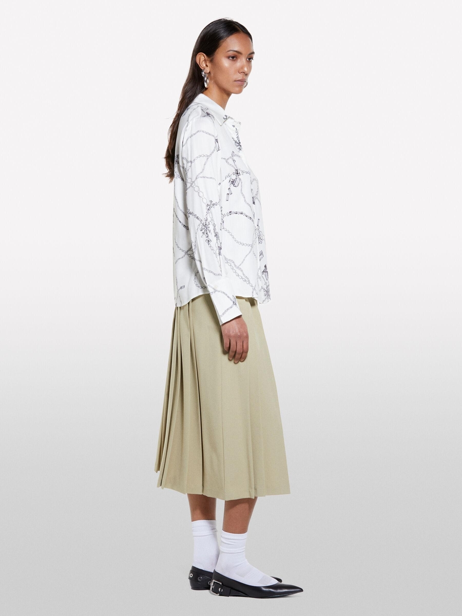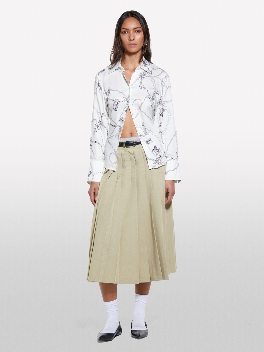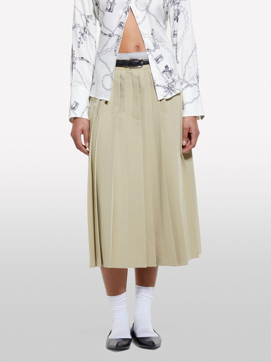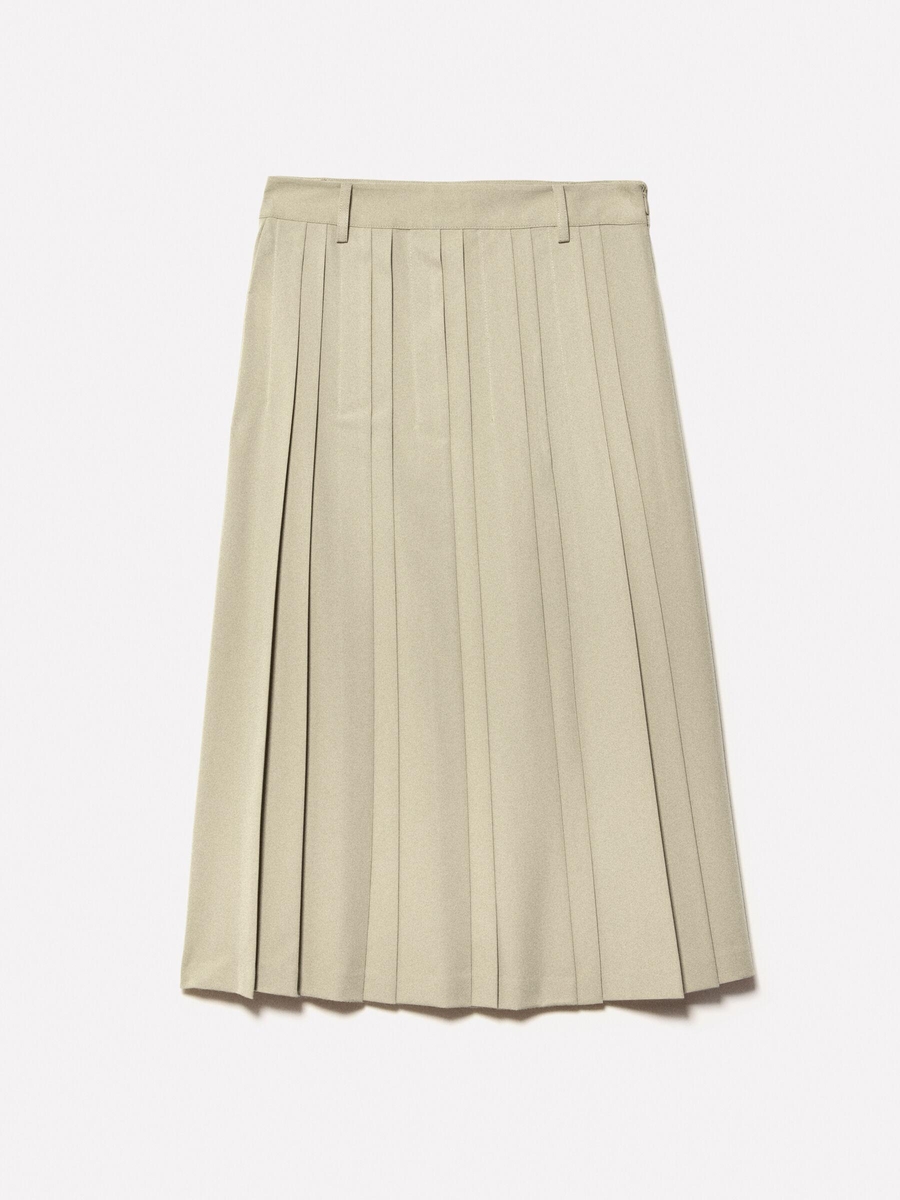 Viskozlu Pileli Yırtmaç Detaylı Midi Etek Kadın Kum Rengi Etek - 325P4KVXL002M