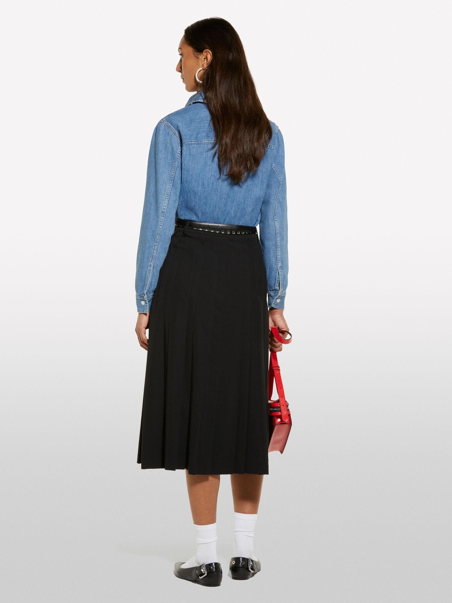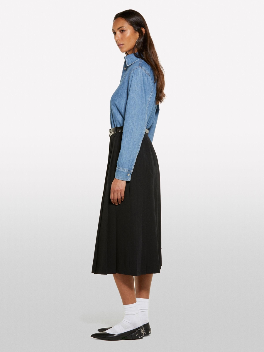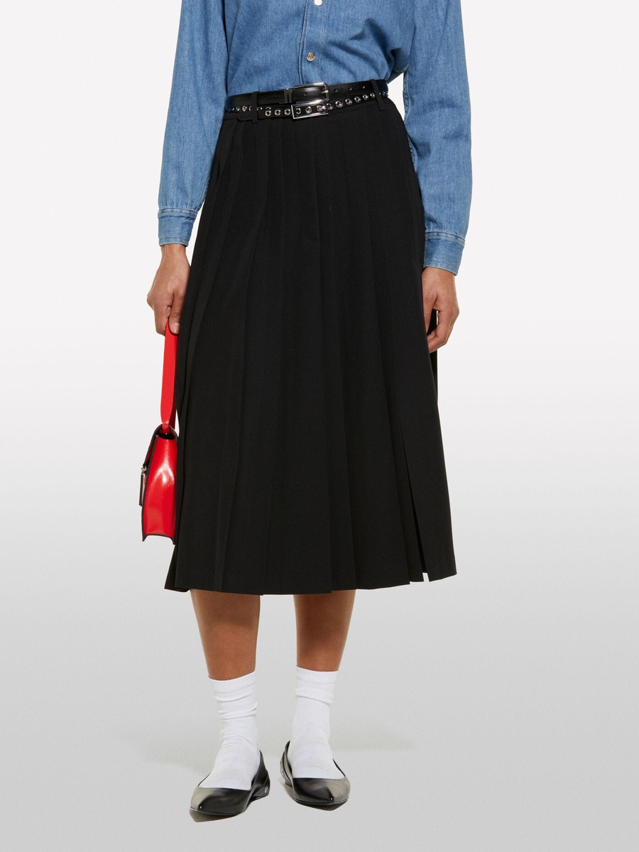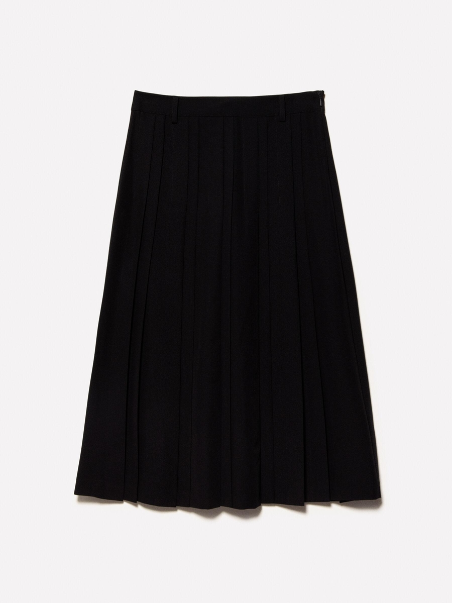 Viskozlu Pileli Yırtmaç Detaylı Midi Etek Kadın Siyah Etek - 325P4KVXL002M