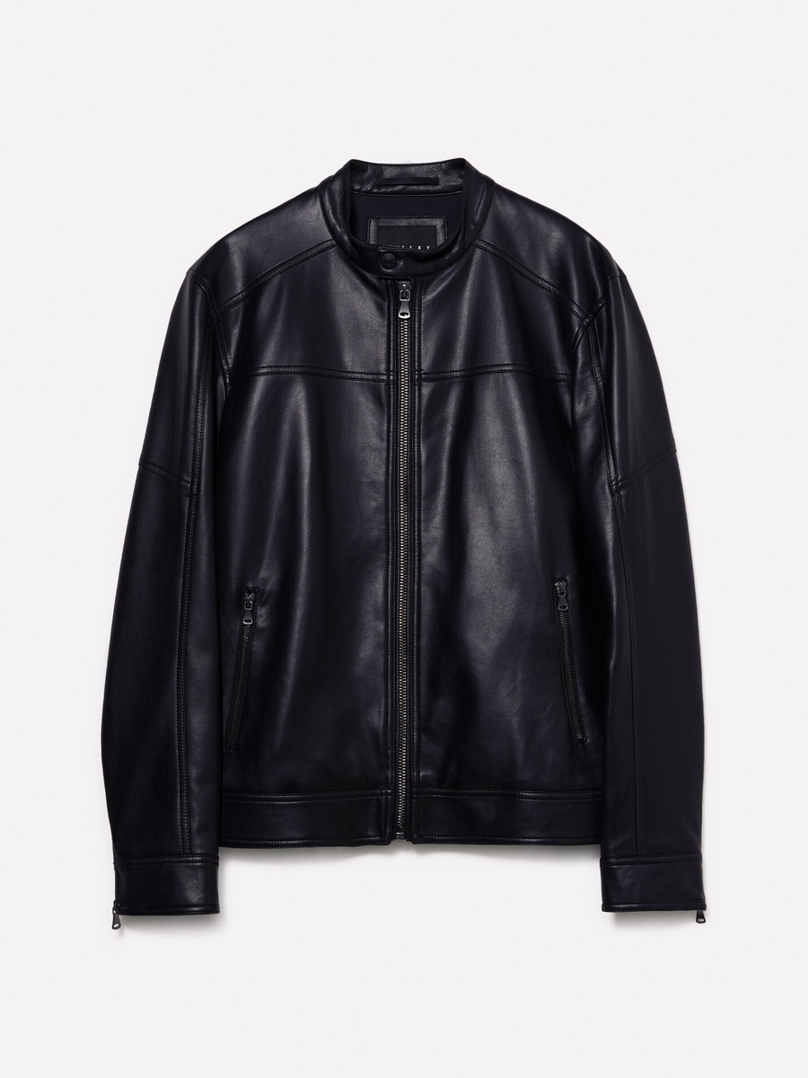Yanları Cepli Fermuarlı Dar Kesim Suni Deri Ceket Erkek Siyah Ceket - 324A2KLSSN036