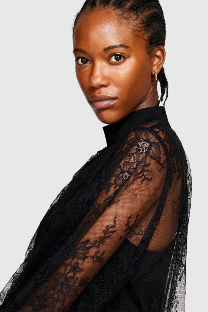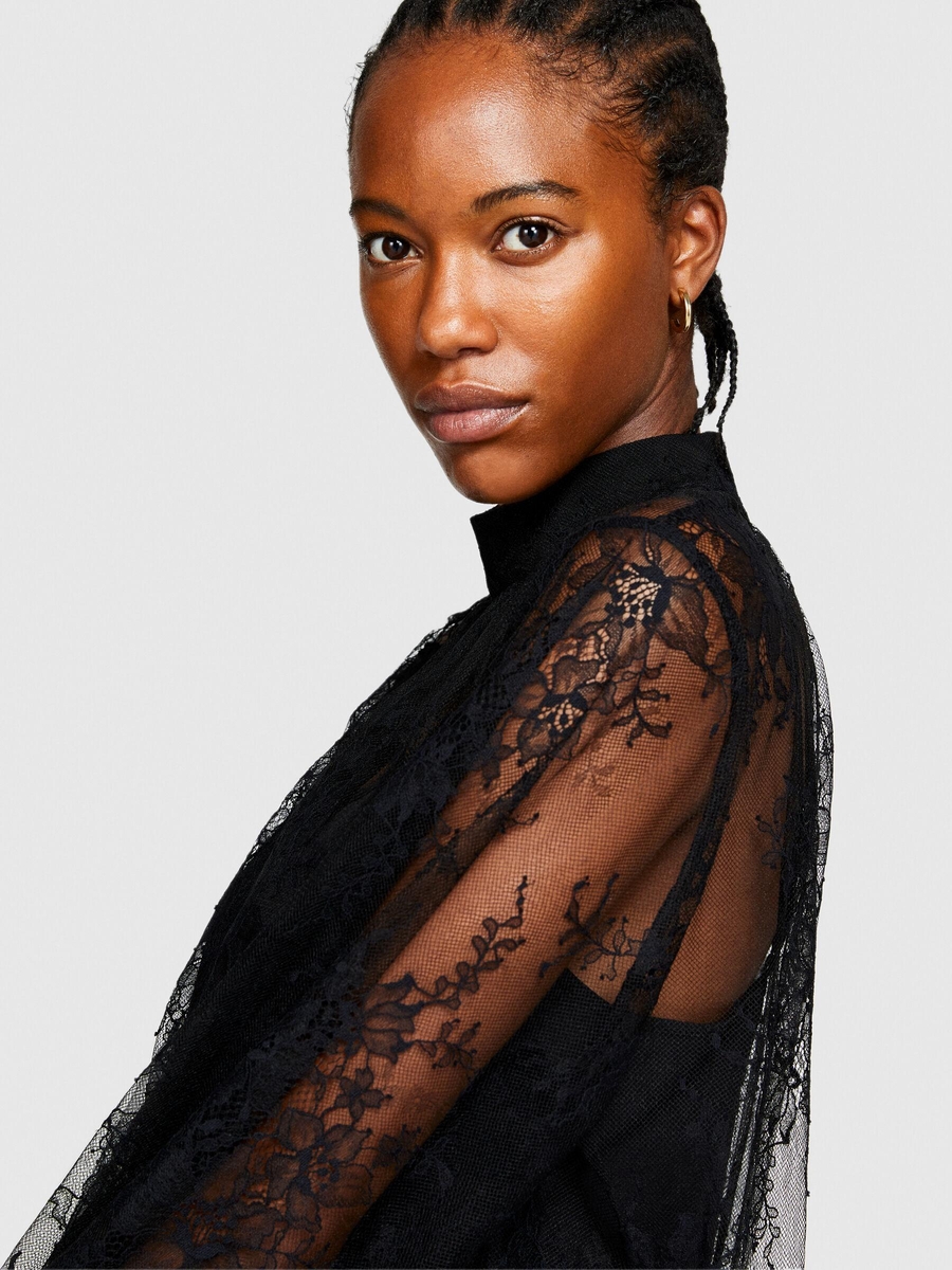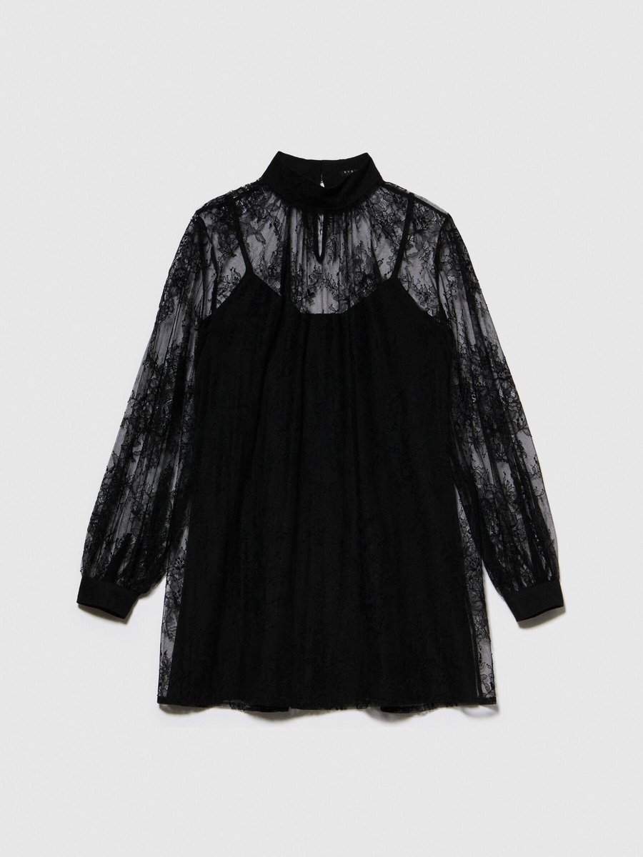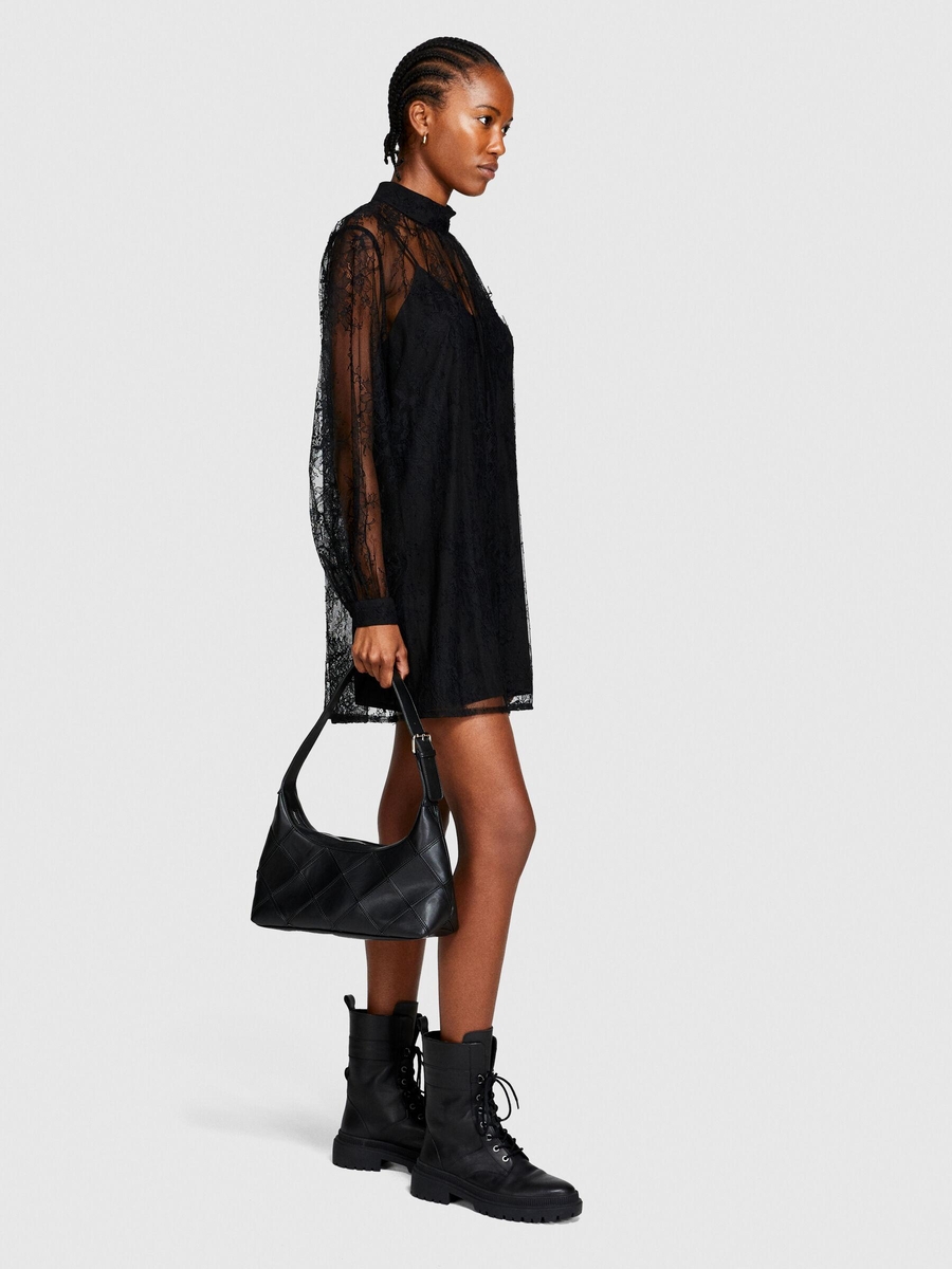 Yüksek Yakalı Uzun Kollu Dantel Elbise Kadın Siyah Elbise - 323A4FBYLV048