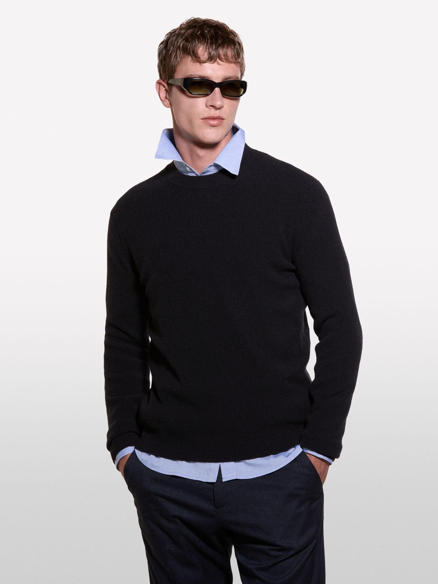Yün Karışımlı Bisiklet Yaka Kazak Erkek Siyah Kazak - 324A1044S100X
