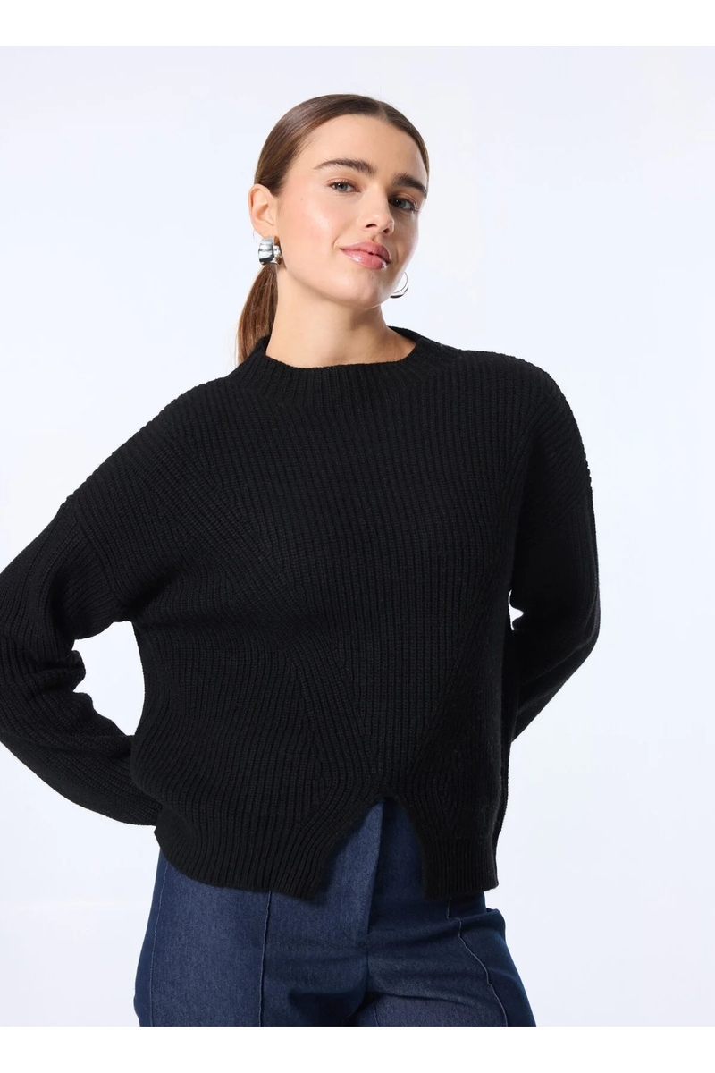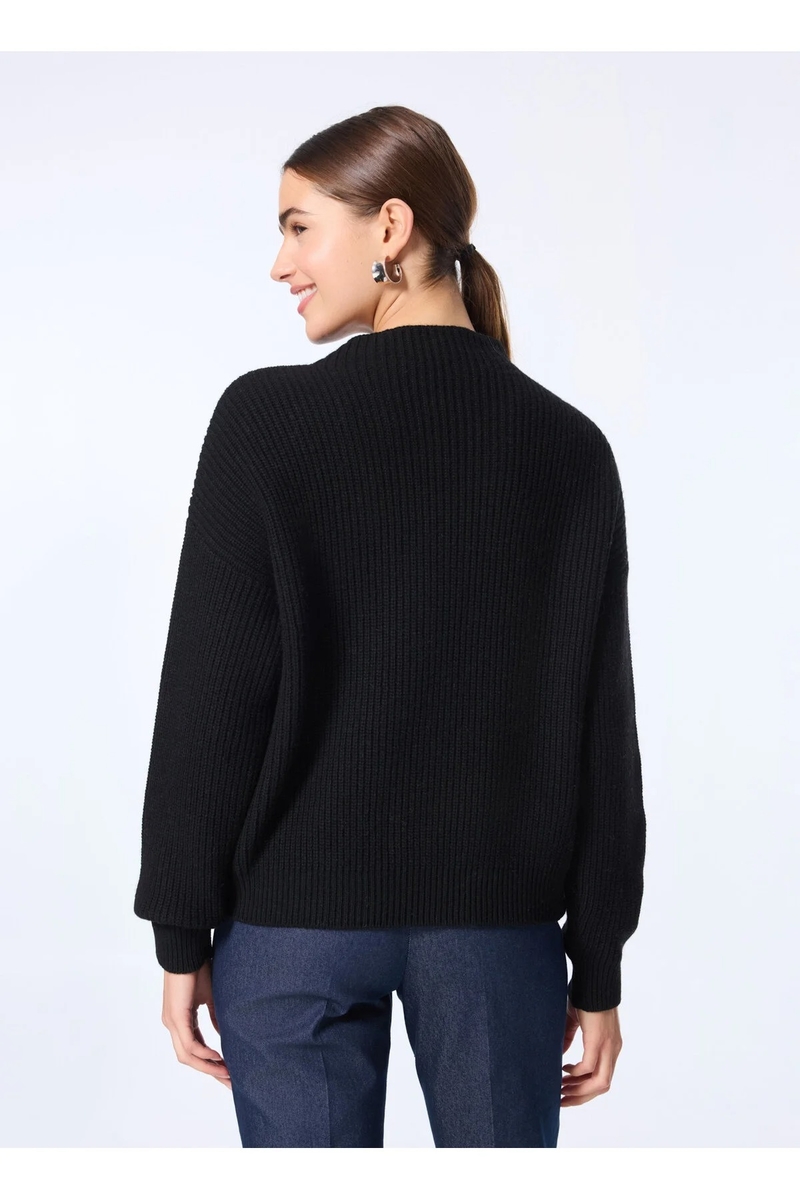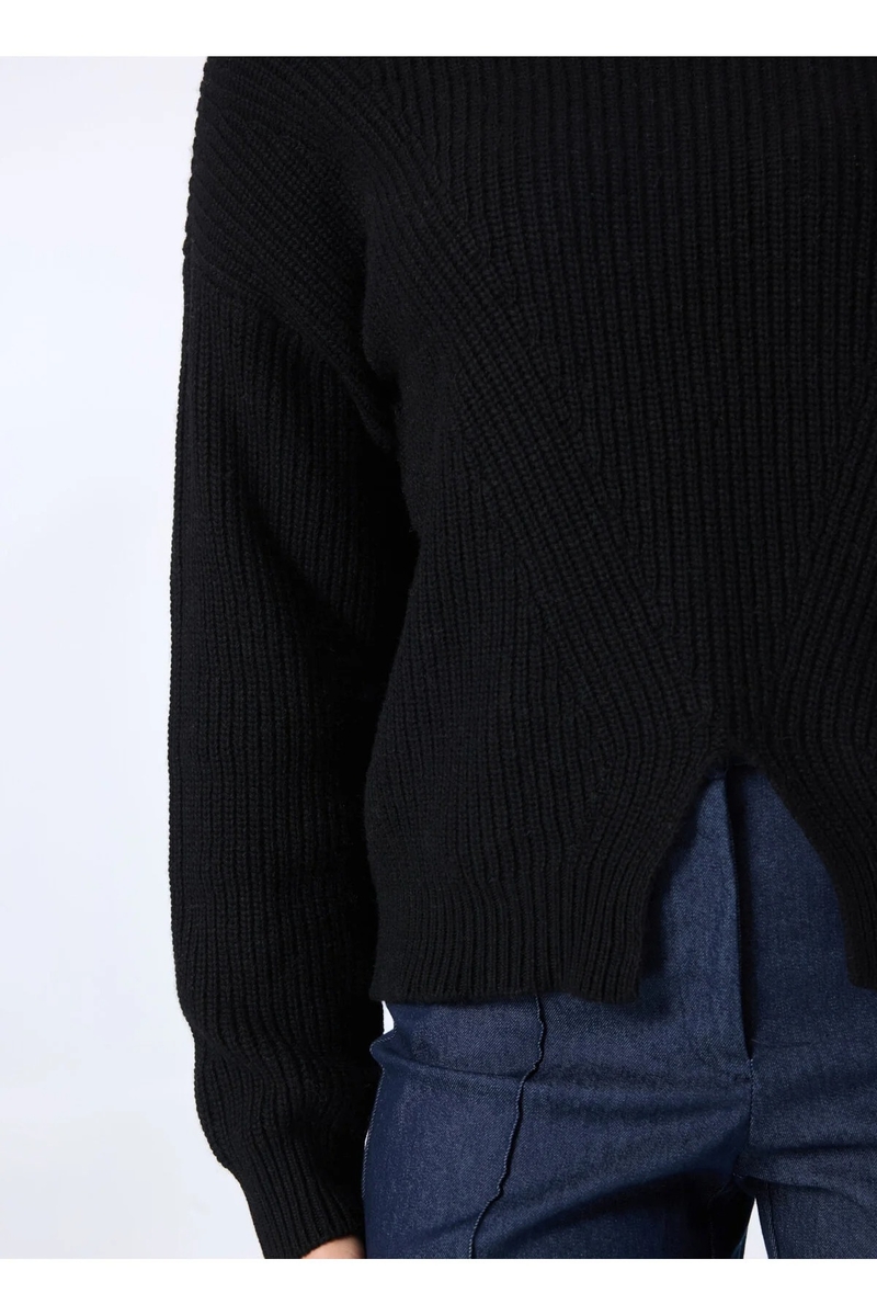Yün Karışımlı Düşük Omuz Normal Kesim Kazak Kadın Siyah Kazak - 324A136WM105B