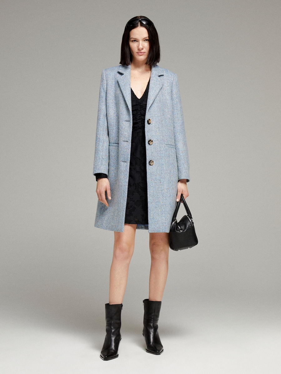 Yün Karışımlı Üç Düğmeli Arkası Yırtmaçlı Kaban Kadın Siyah Kaban - 324A2MKDLN056