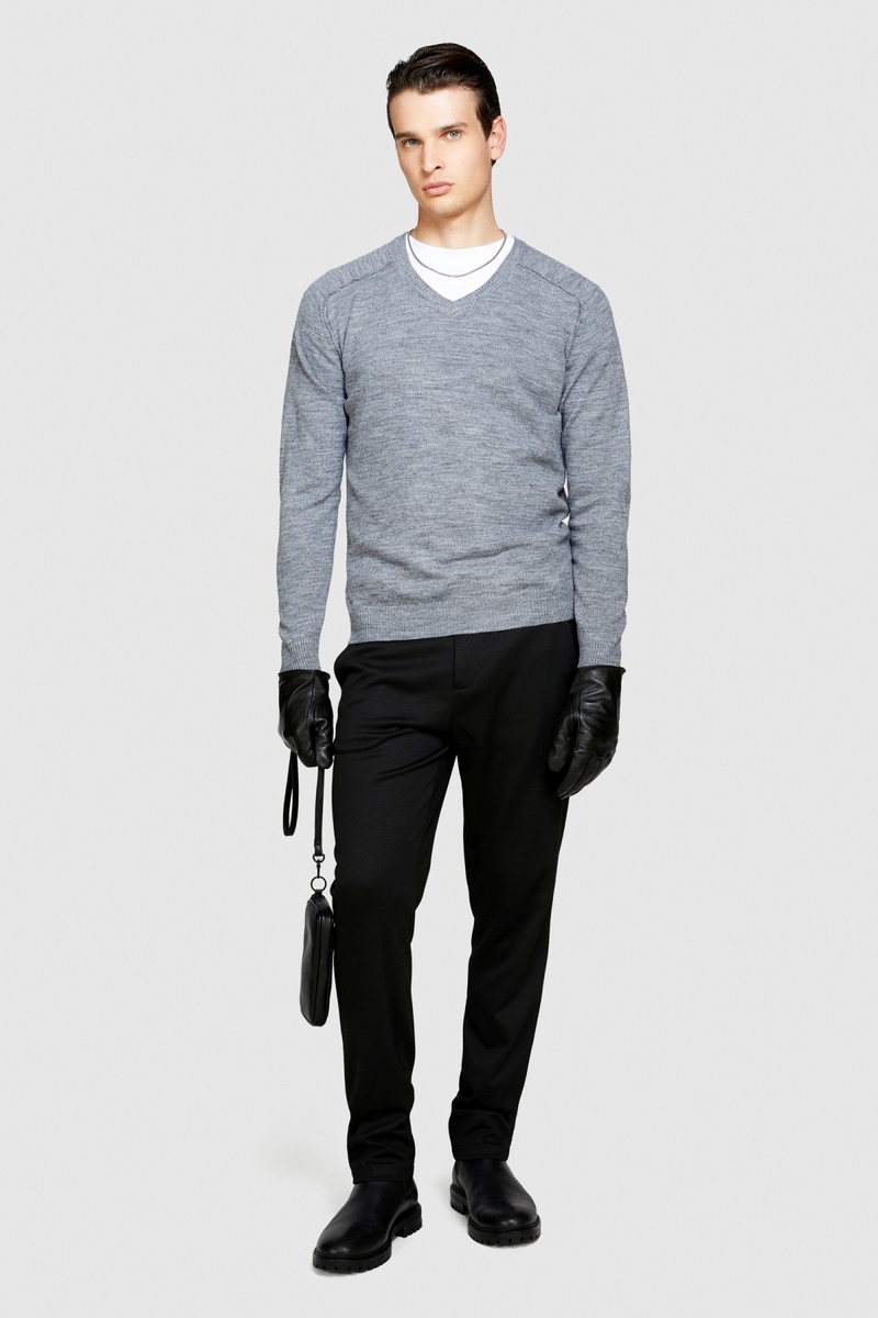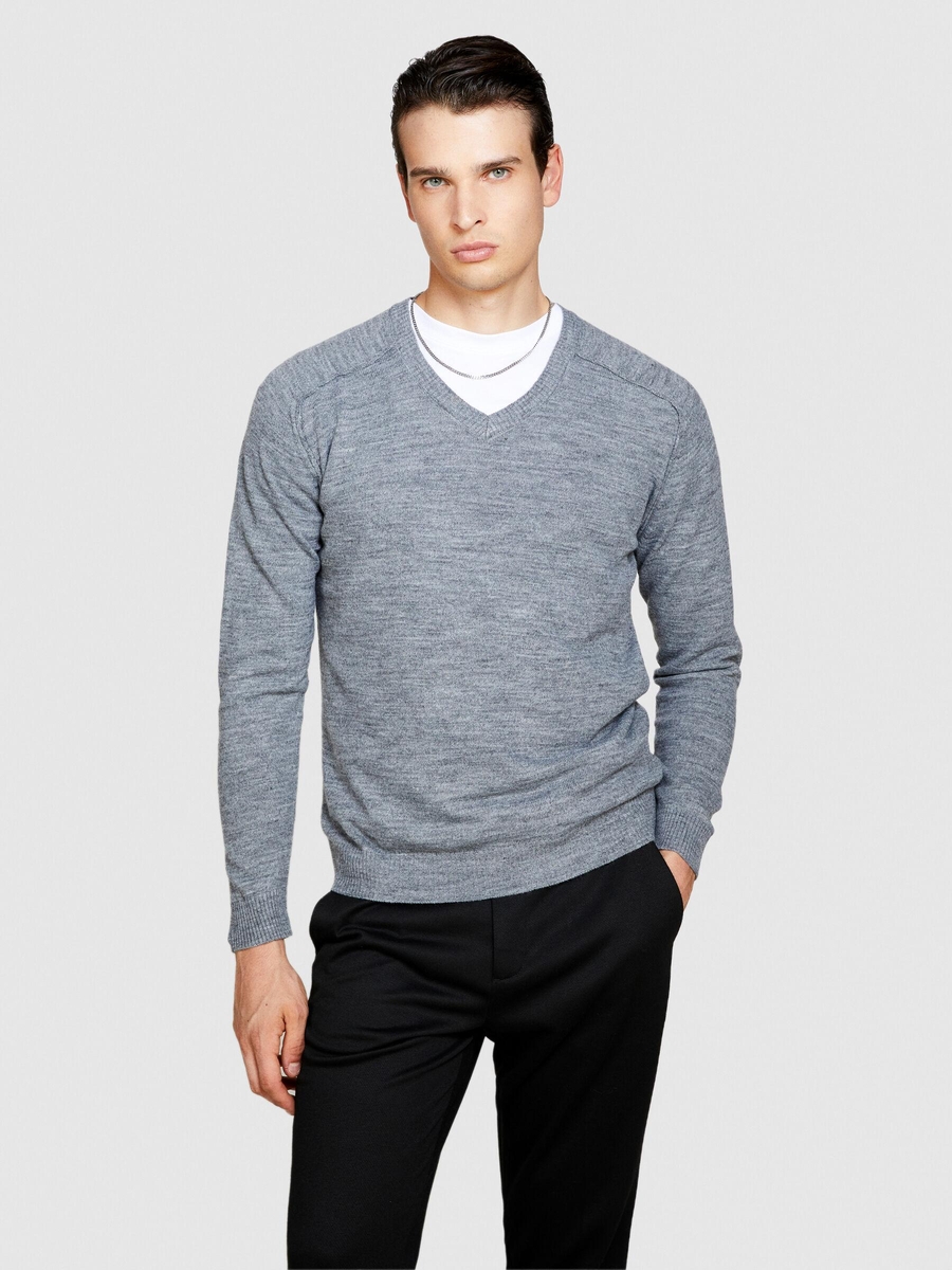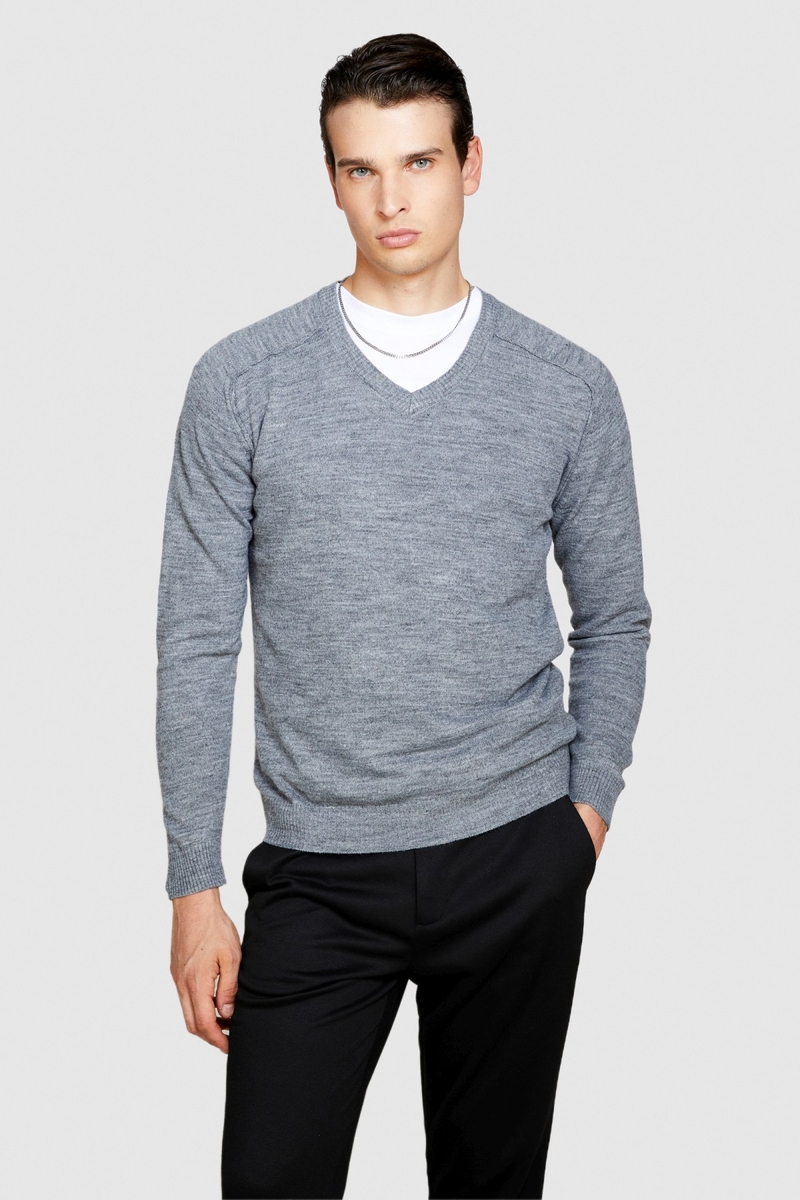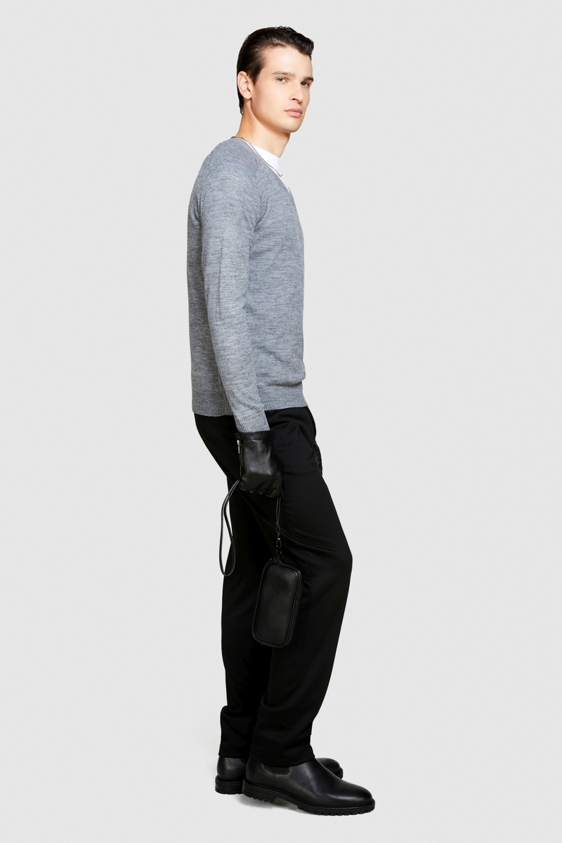 Yün Karışımlı V Yaka Kazak Erkek Siyah Kazak - 323A107GS102O
