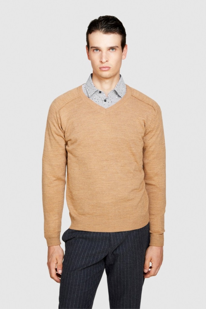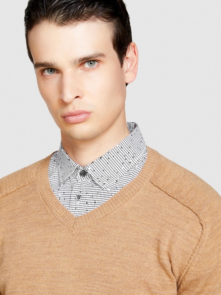 Yün Karışımlı V Yaka Kazak Erkek Yeşil Kazak - 323A107GS102O