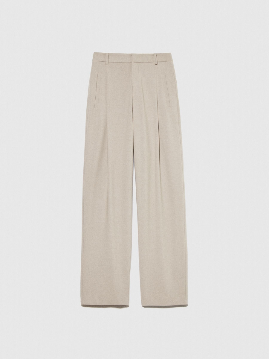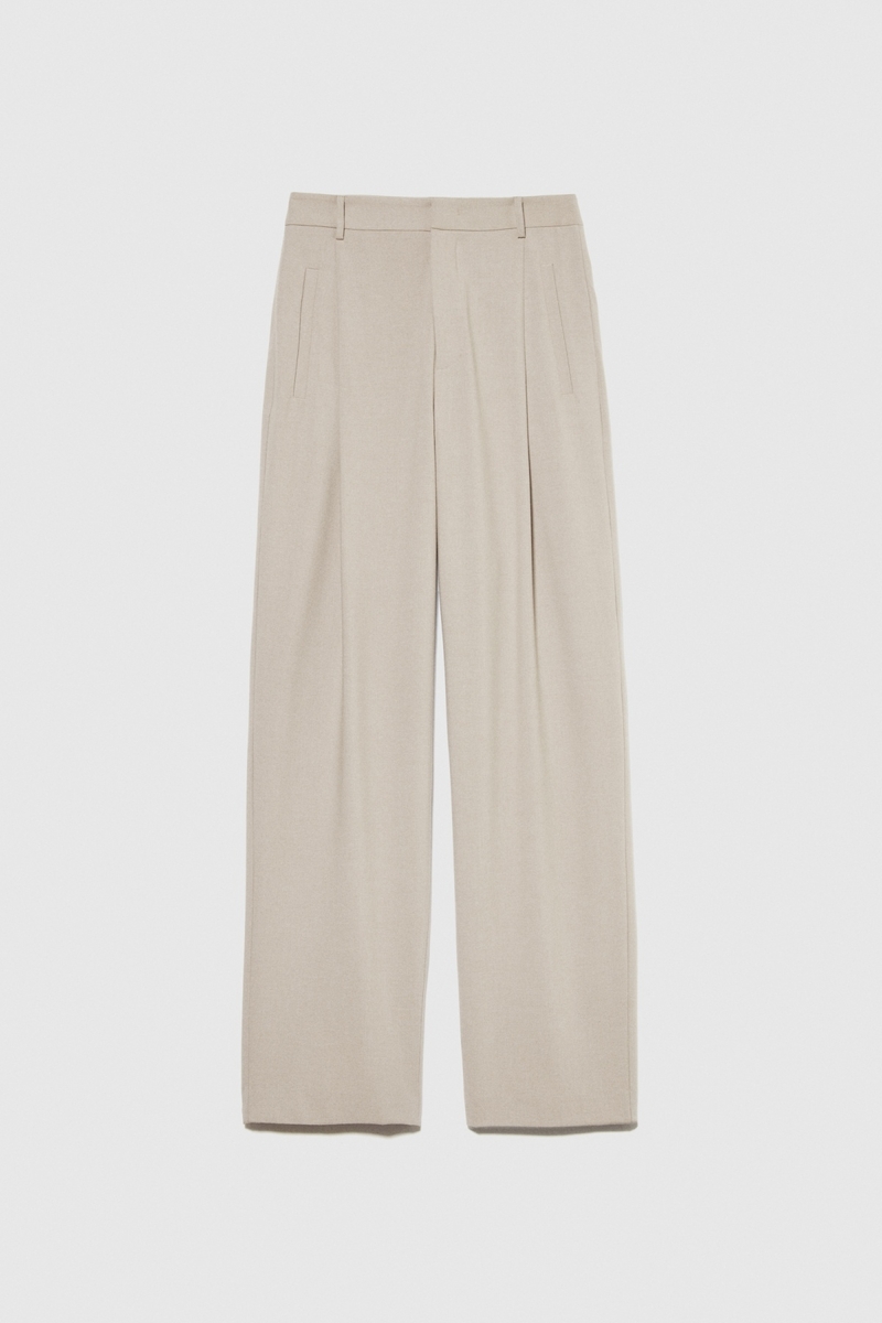 Yün-Viskoz Karışımlı Yüksek Bel Geniş Paça Pantolon Kadın Koyu Ekru Pantolon - 323A4PH7LF044