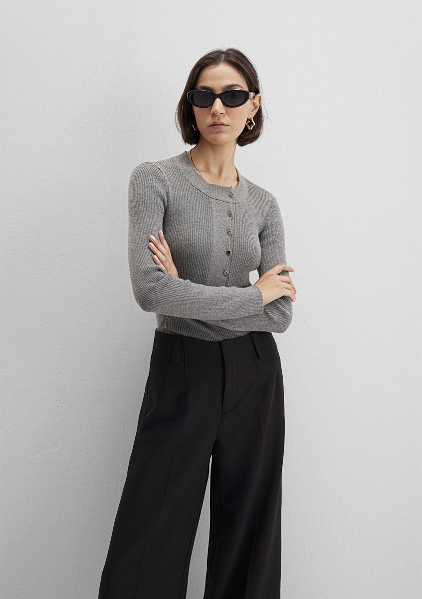 YUVARLAK YAKA KAZAK Kadın Gri Kazak - M1710830